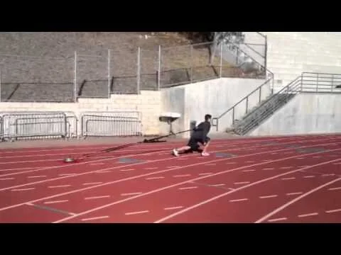3. The trainee sprints a distance with the trainer pulling back providing resistance.